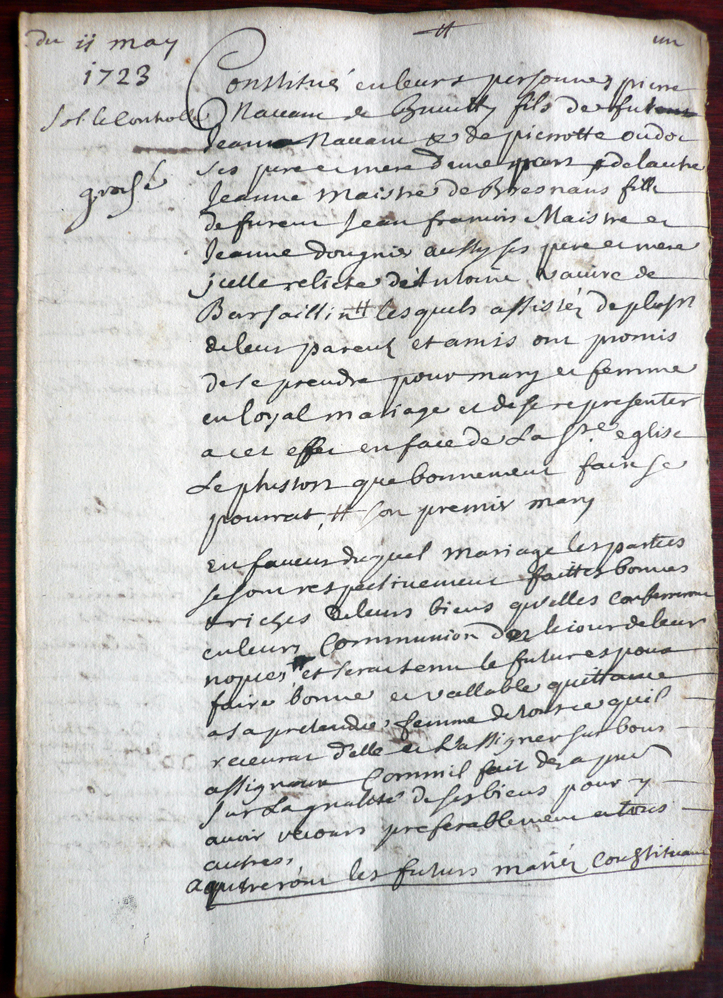 11/05/1723 - Contrat de mariage entre Pierre NAVANT et Claude Jeanne MAITRE