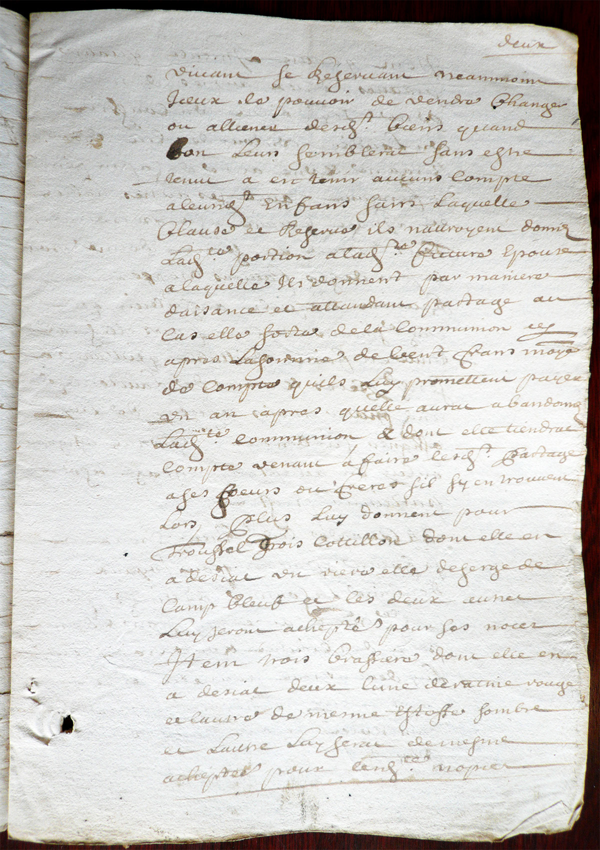 2. accorde a son epouse son logement 3. et habitation en sa maison, commodité 4. aux chambre, au feu et a la cuisine d’icelles, 5. place a l’ecurie pour y loger une vasche, 6. au soulier pour y haberger et a la grange 7. pour y battre avec un ouvrier 8. de jardin et cheneviere pres icelle pour en 9. jouir pendant sa viduité et au surplus 10. du present traitté, les parties se reglerons 11. suivant le coutume de la province, ainsy 12. que le tout a este traitté et accordé entre 13. les parties que promettent effectuer le 14. contenu cy dessus sans y contrevenir a peine 15. d’interrest et despends, obligeant pour ce 16. lesdites parties, leurs biens presents et futurs 17. aux cours et soubz le seel du roy pour y 18. estre contraint en renonceant a touttes 19. contraires exceptions et au droit requerant 20. la specialle notamment ladite Jeanneau a ce 21. senatus consult vellein aux authentiques 22. sy qua mulier et suie a me a la loy Julie 23. et a tout autres introduit en faveur des 24. femmes. Faict et passé audit Monthaulier 25. en la maison dudit Moureau par devant 26. Pierre François Fumey d’Aulmont, notaire royal, 27. le vingt mars mil sept cent un, en présence 28. de Claude Jeanneau, anciain notaire dudit Monthaulier 29. et jean Brenot dudit Aulmont, tesmoins 30. requis, present aussy Claude Estienne Moureau [X] oncle 31. de la future epouse et Estienne Jacquot, son cousin, 32. ceux scachant escrire ayant signez, les autres 33. illiterez enquis. [X] et Claude Jeanneau. Claude Pierre Maistre E Maistre Nicolas Maistre Est Jacquot C Moureau CA Cherin |
