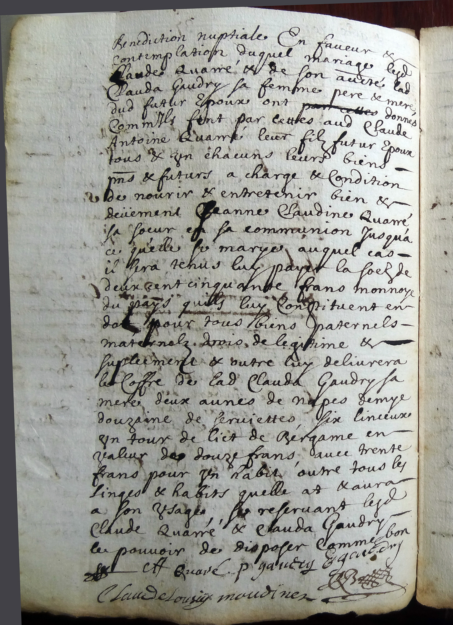 08/09/1702 - Contrat de mariage entre Claude Antoine CARREY et Claudine GAUDRY
