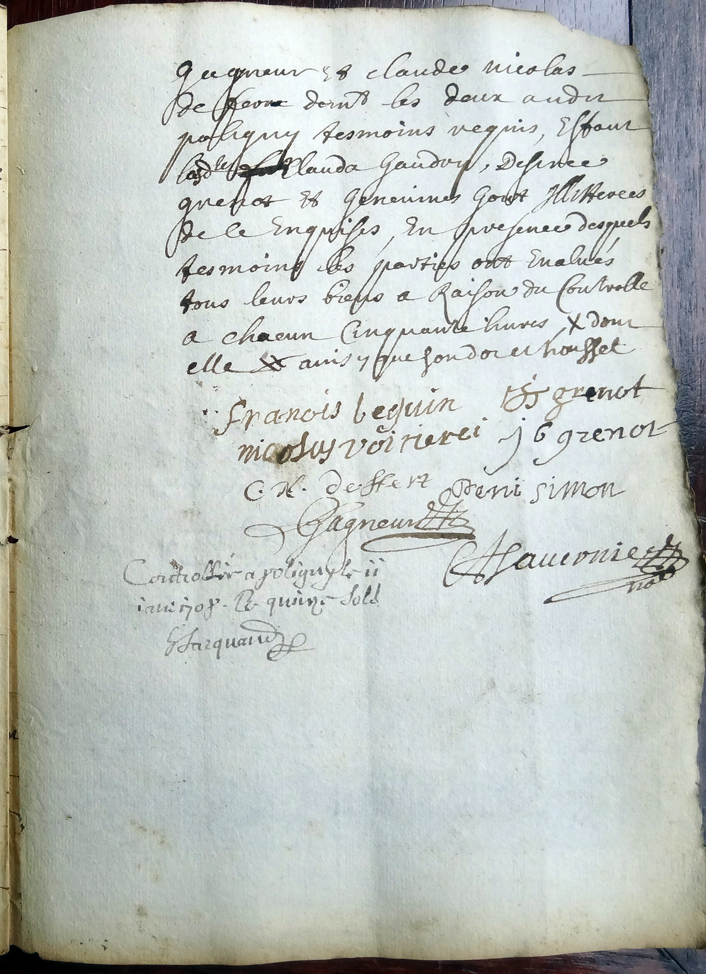 Il s'agit d'un acte rédigé par Me Anatole Antoine TAVERNYE, notaire à Poligny de 1700 à 1742. Source : Archives Départementales du Jura, cote 4E 28/65.